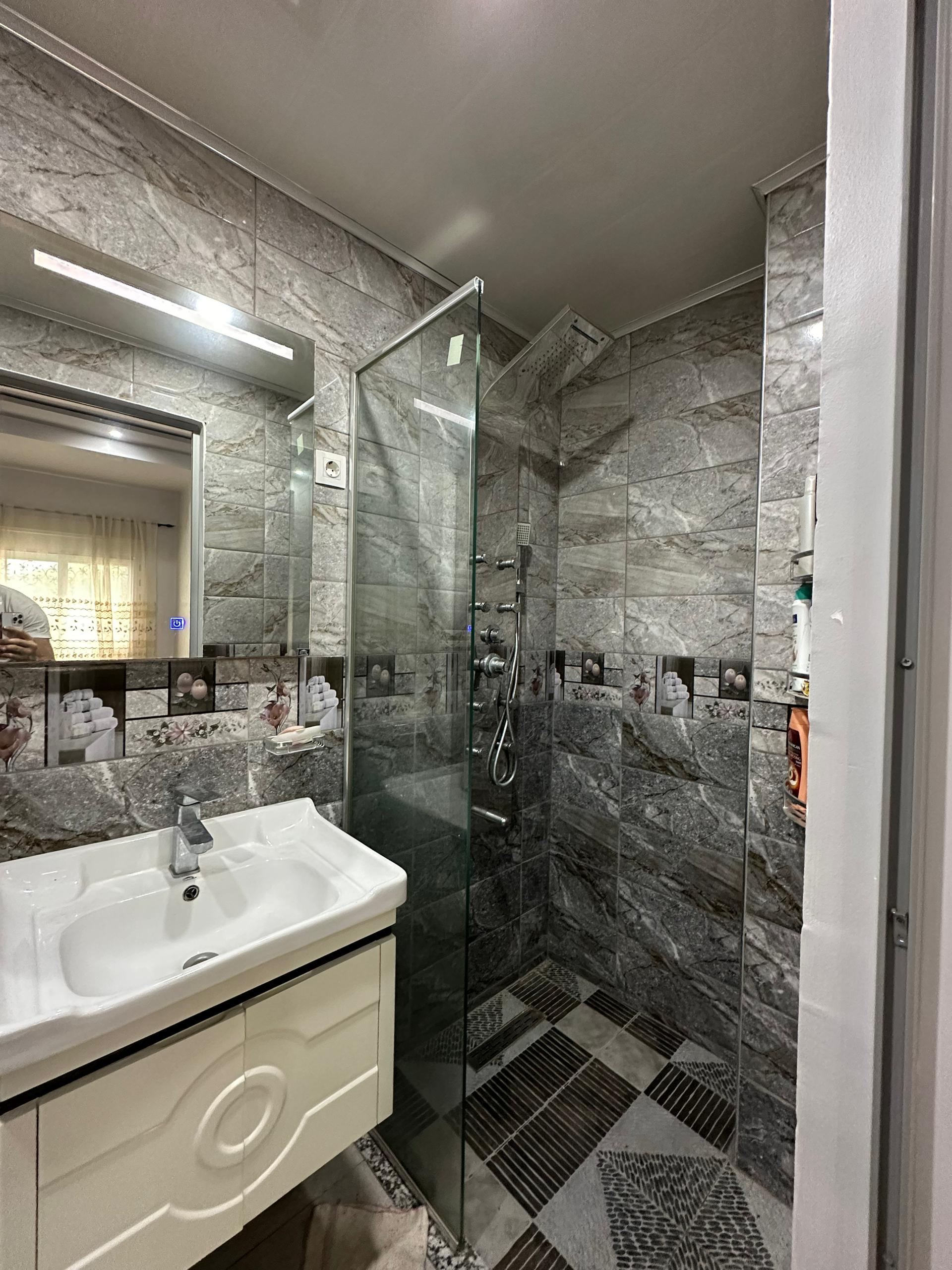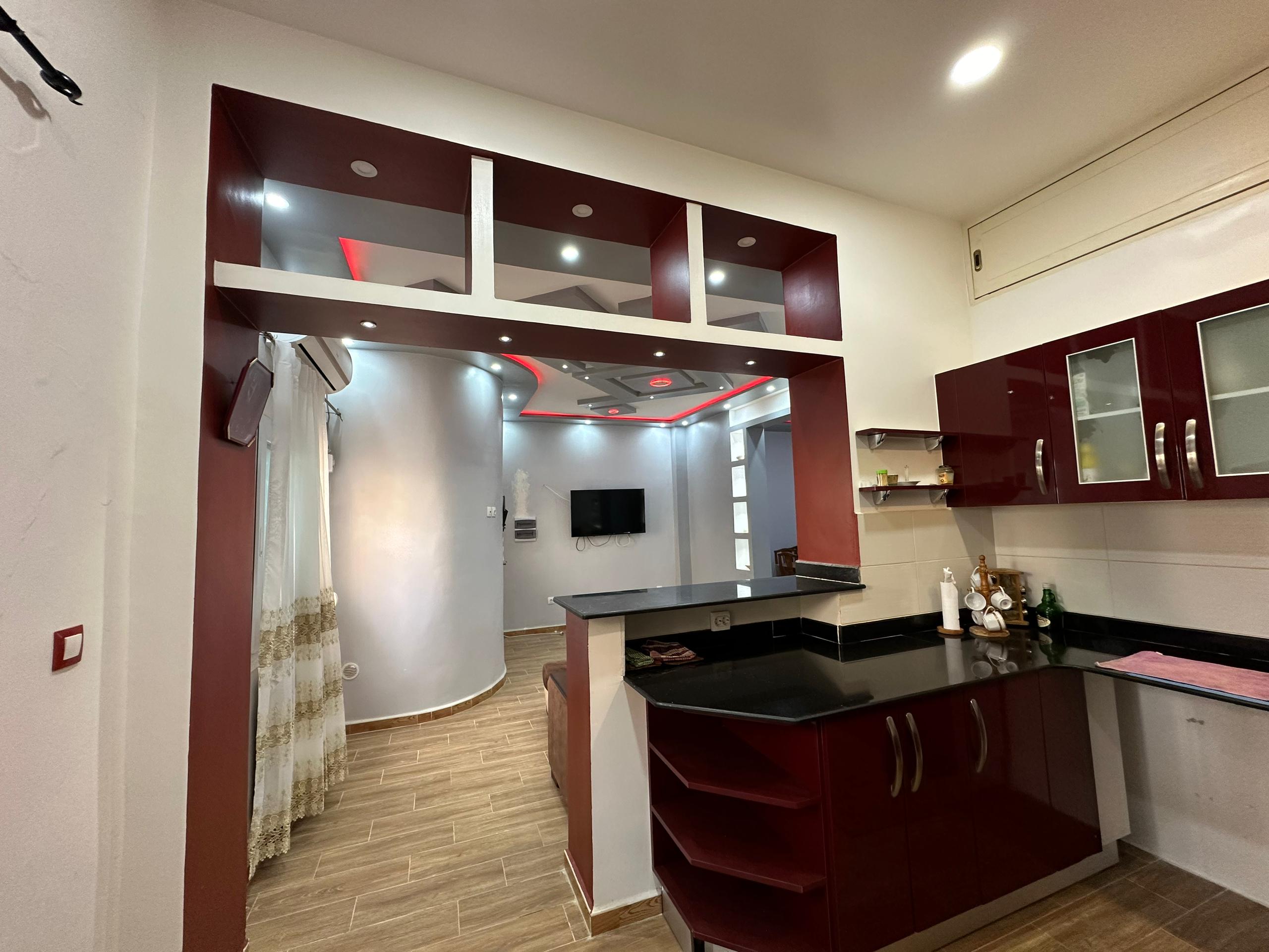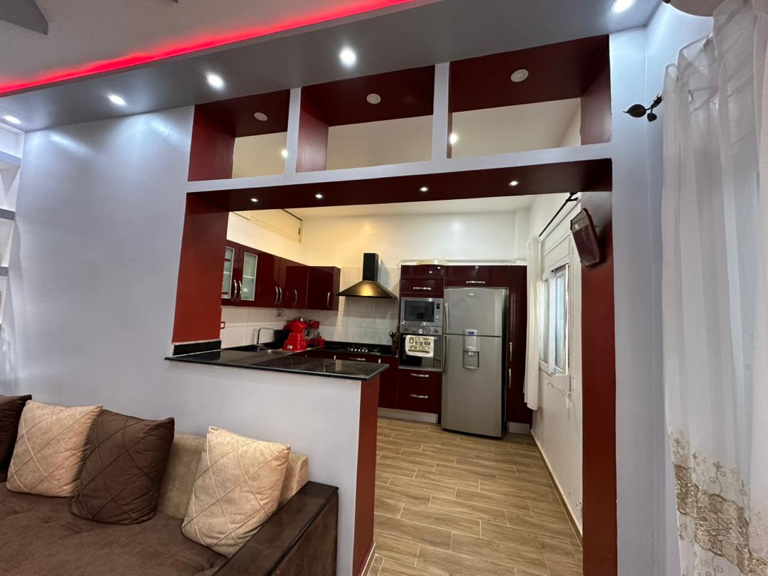 Appartement F4 grand standing fini, qui se situe au rez-de-chaussée au village Sidi KHALED, IFLISSEN, TIGZIRT, TIZI-OUZOU, avec une superficie d’environ 150m2 habitable avec une entrée individuelle, ce bien est meublé et équipé et dispose d’un grand séjour avec cuisine équipée à 100% et WC séparé de la salle d’eau, de 02 chambre pour les enfants et d’une chambre parentale avec WC et douche jumelées ,avec un acte de propriété et un espace de stationnement avec la spécifié de la résidence clôturée qui est un avantage pour garantir la sécurité.